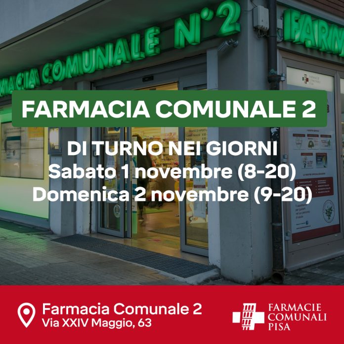 La Farmacia Comunale 2 di XXIV Maggio, 63 sarà di turno il fine settimana del 1 e 2 novembre.